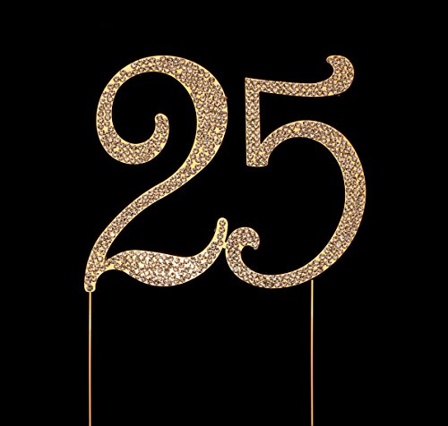 - MULTIPLE USES AND A KEEPSAKE: Use this as a 25th birthday cake topper or 25th anniversary cake topper, a centerpiece, part of a floral arrangement or place setting. Remove the metal prongs after the party and save this as a keepsake. This is a must have bling cake topper for your birthday or anniversary party decoration.