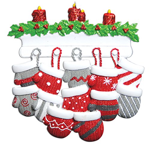 PERSONALIZED CHRISTMAS ORNAMENTS FAMILY KIT- MITTEN FAMILY OF 12 KIT