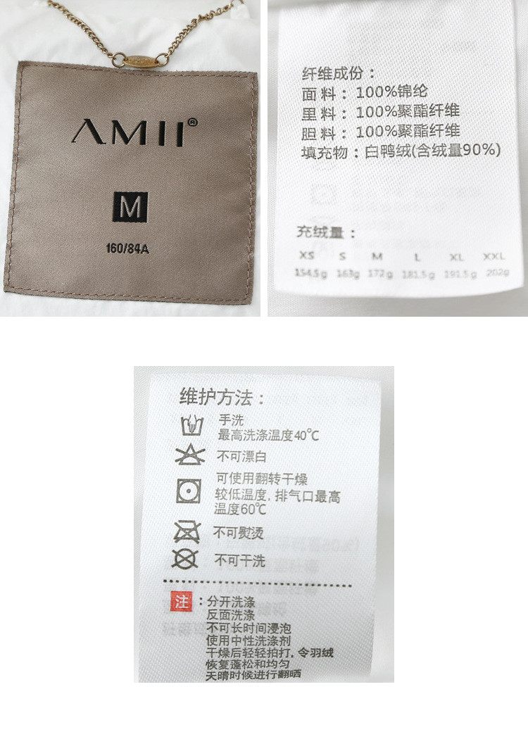 | 面料成分: | 面料:100%锦纶 里料:100%聚酯纤维 胆料:100%聚酯纤维 填充物:白鸭绒(含绒量90%) |