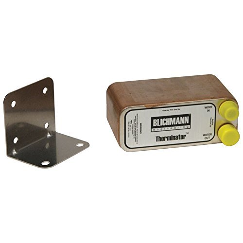 Studio : Blichmann Engineering Publisher : Blichmann Engineering Product Description The Therminator Wort Chiller from Blichmann Engineering is the fastest way to chill your wort to yeast pitching temperatures so your fermentation gets off to a quick, bacteria free start. The Therminator features brazed stainless steel plates for reliable, leak proof performance. The Therminator is super efficient, using less water than other chillers, and still provides high performance chilling even with warmer ground water temperatures. It is capable of chilling 10 gallons of boiling wort to pitching temps in just 5 minutes when using 58ºF cooling water at a flow rate of 5 gallons per minute. Essential equipment for large volume brewers. Get your fermentation off to a fast, bacteria-free start. Chill your wort to yeast-pitching temperature in a flash with the Therminator. It chills 10 gallons of wort using 58° cooling water (at 5 gallons per minute) in just 5 minutes! It's the most effective wort chilling device available. - Chills 10 gallons of wort in 5 minutes (using 58° cooling water at 5 gal/minute flow rate) - 316 stainless steel plates and fittings, brazed together with pure copper in an oxygen-free furnace - Eliminates the possibility of leaks unlike a gasket type unit - Features low-restriction, garden-hose size water inlets and outlets, and 1/2" MPT wort inlets and outlets - Low restriction allows for use with a gravity feed or a pump - Can be sanitized by flushing with sanitizer, by boiling or recirculating boiling wort, or by baking in an oven - Back-flush hose assembly (sold separately) can be used to flush water back through, to clean out unit after use - Includes stainless mounting bracket and detailed instructions 0