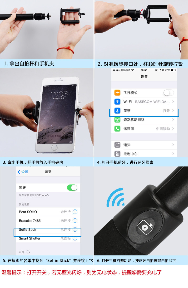 sheng color(1)Brand: BASEUS / times thinkingModel: Bluetooth Self-poleWhether or not containing remote control: withMaterial: Other