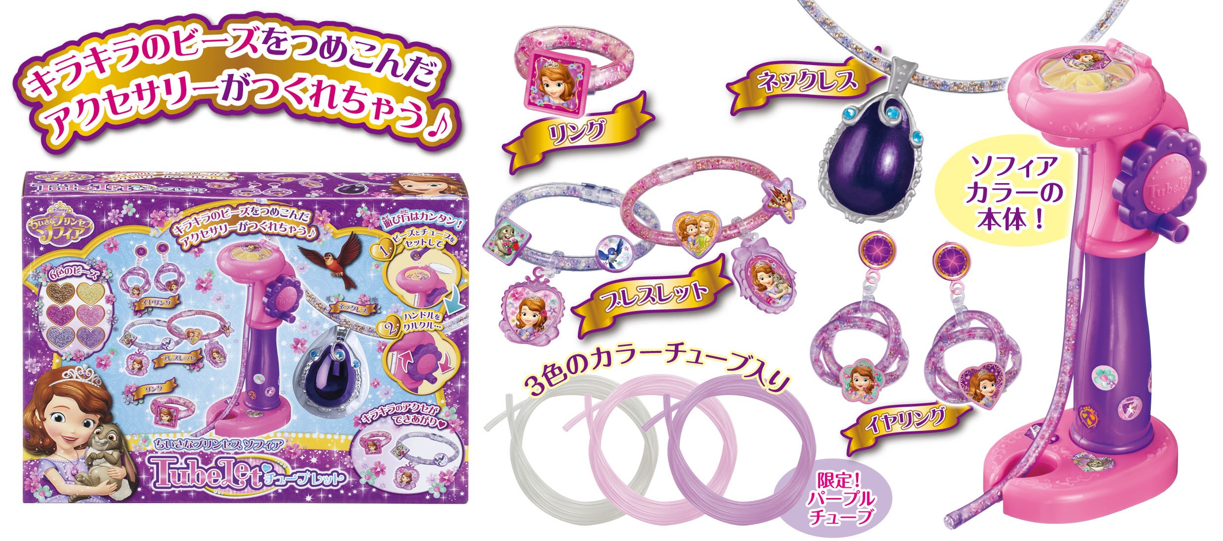 Besides clear, pink tube, the tube contains purple limited by Sofia set.