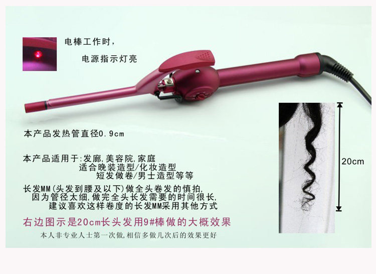 Colour2Thermal conductivity material: tourmaline ceramicBest Costume time: 1 minute (inclusive) -2 minutes (inclusive)Applicable hair: dry hair