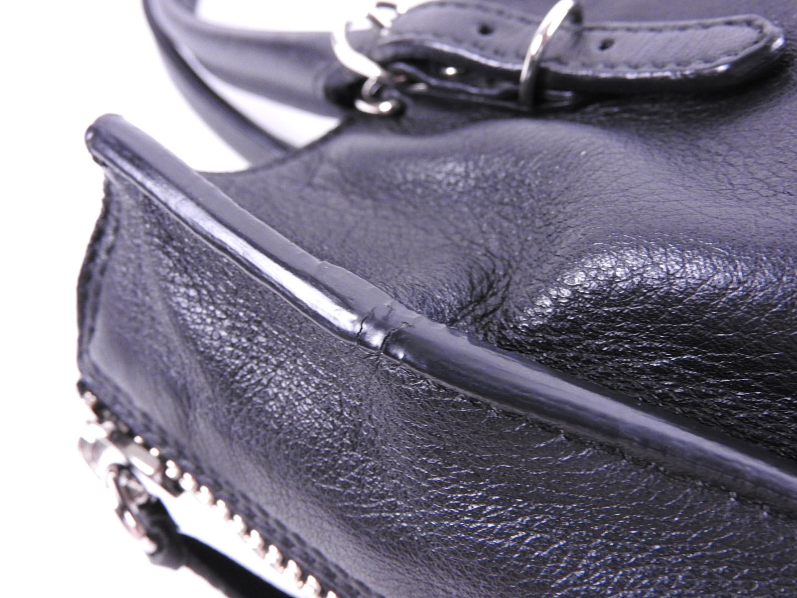| Corners | Small scuffs and tiny peelings at the bottom corners. Tiny cracks and small wrinkles in the varnish around the bag. |