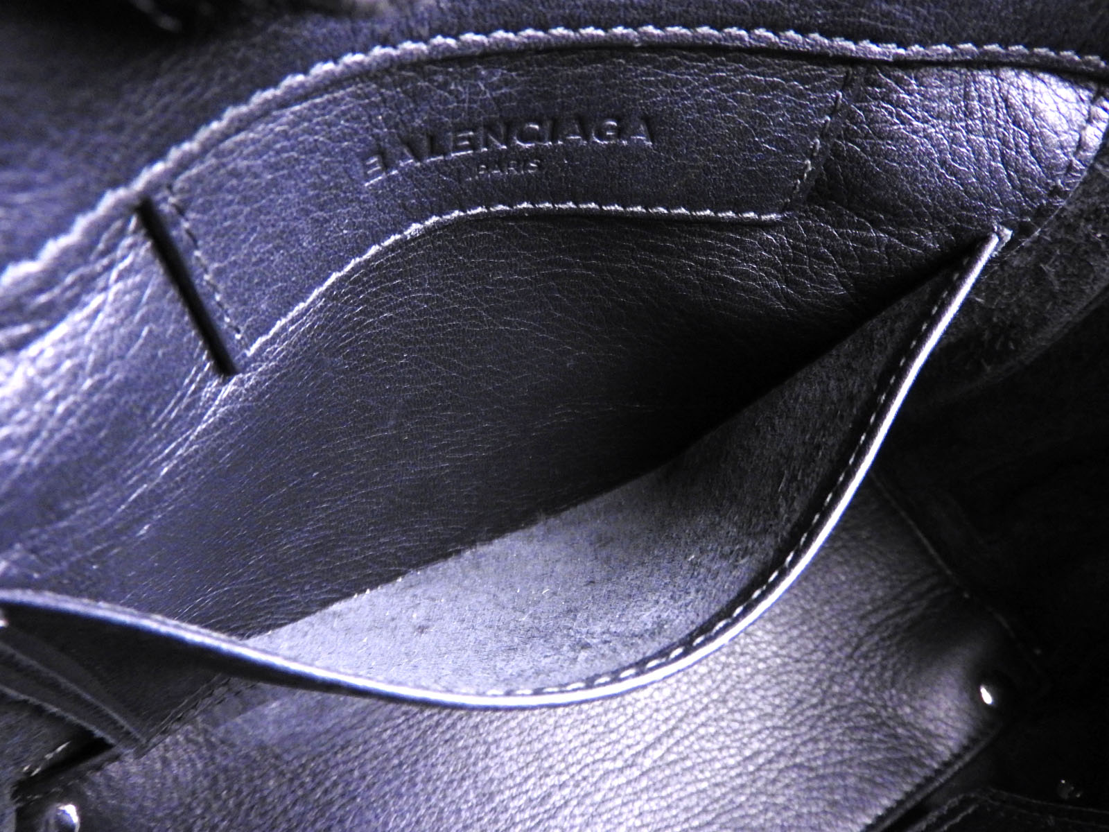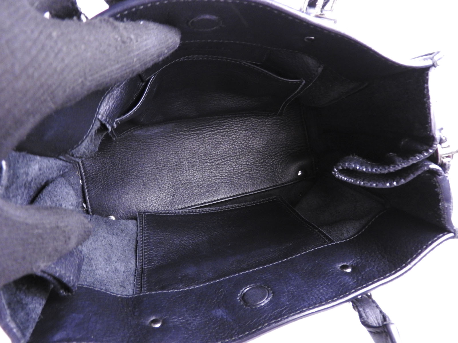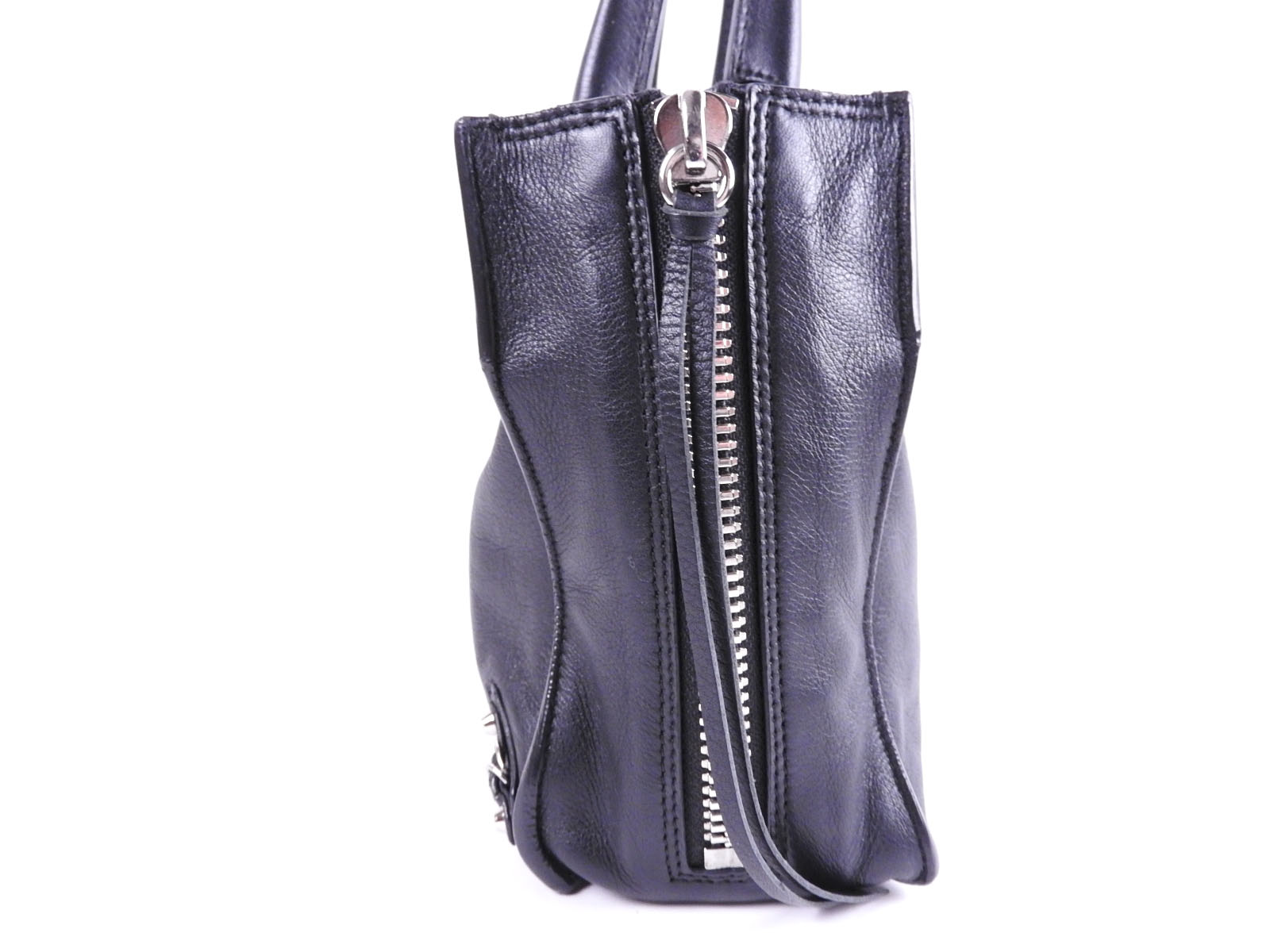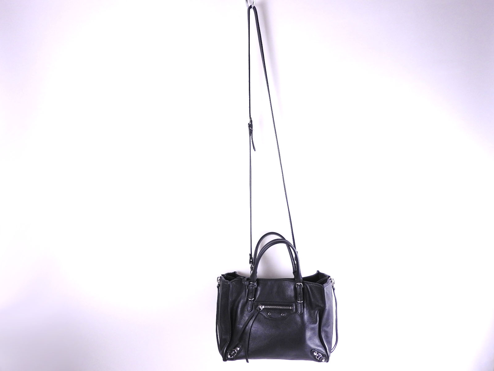 Auth BALENCIAGA Papier Mini 2way Shoulder Hand Bag Calf Leather Black Silver With Mirror 357333 A-7263