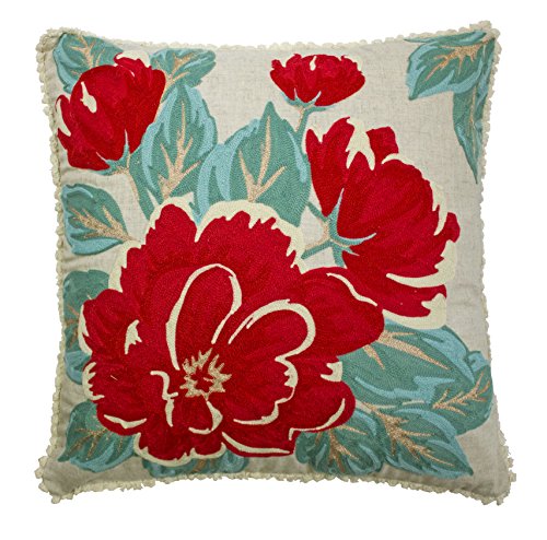 Balmont Collection Embroidered Rose Accent Pillow, 20" x 20", Berry
