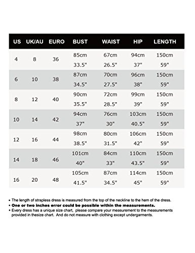 -. Feature : 裏地あり、生地伸縮性がなし。後ろファスナー付き、胸カップ入り、ドライクリーニングお薦める / S(US4):バスト85cm ウエスト67cm ヒップ94cm 着丈150cm / M(US6):バスト87cm ウエスト70cm ヒップ96cm 着丈150cm / L(US8):バスト90cm ウエスト72cm ヒップ99cm 着丈150cm / XL(US10):バスト94cm ウエスト76cm ヒップ103cm 着丈150cm / XXL(US12):バスト98cm ウエスト80cm ヒップ106cm 着丈150cm / XXXL(US14):バスト101cm ウエスト84cm ヒップ110cm 着丈150cm / XXXXL(US16):バスト105cm ウエスト87cm ヒップ114cm 着丈150cm