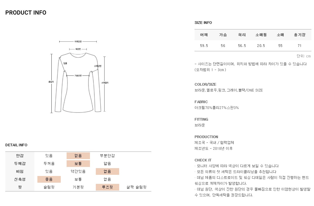 포근한 니트소재로 착용감이 좋은 니트에요