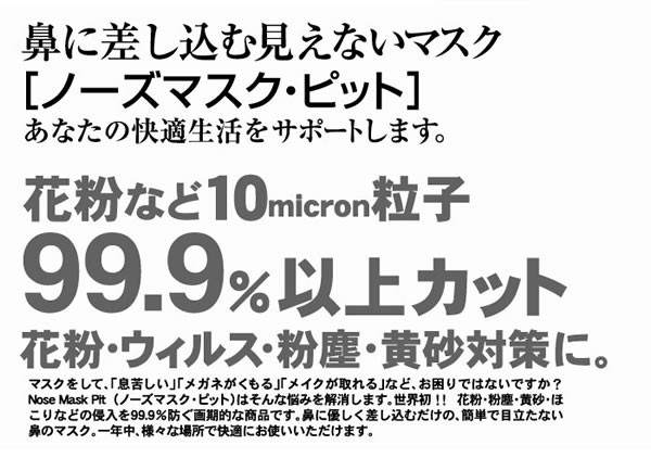 あの、鼻に差し込む見えないマスク「ノーズマスクピット」がリニューアル!花粉粒子99.9%以上カットの実力!高品質フィルターで呼吸も快適。マスクが手放せなかった方、必見です。