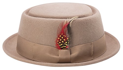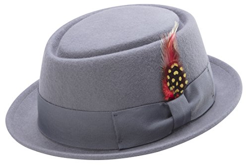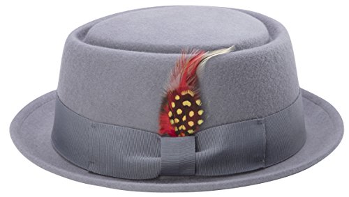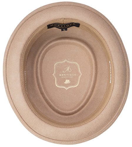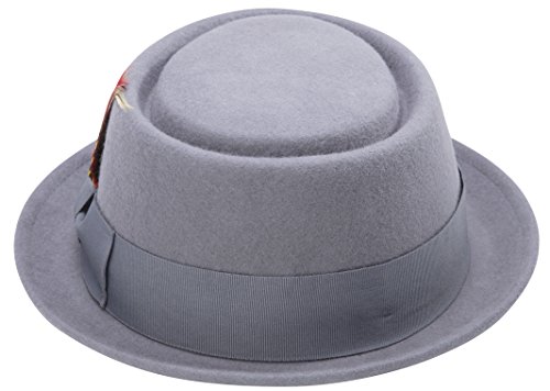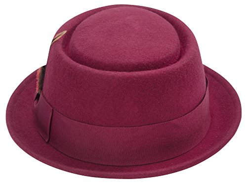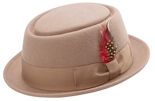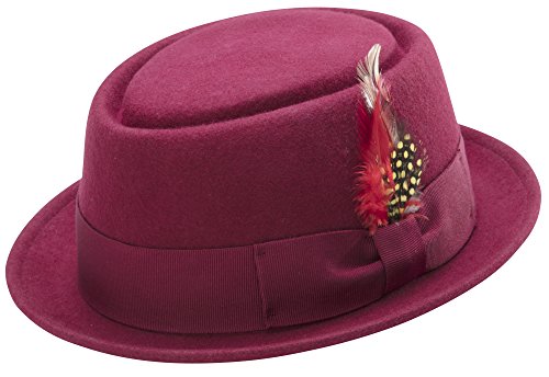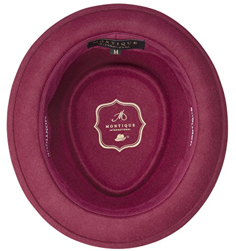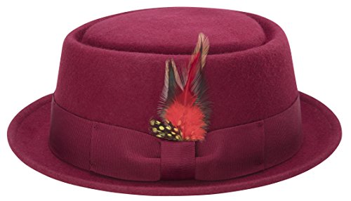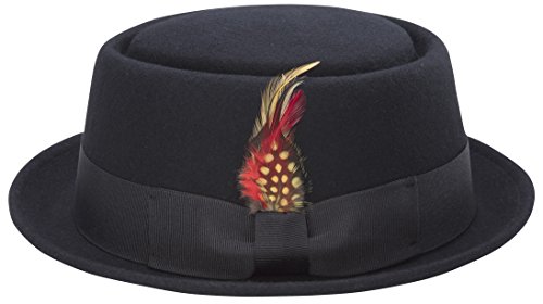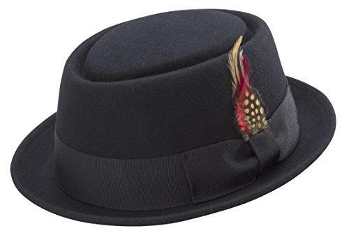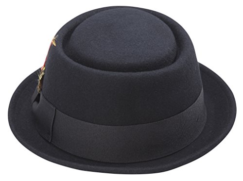 (Montique)/Accessories/Hats/DIRECT FROM USA/Montique Men's Stingy Brim Teardrop Dent Pork Pie Wool Felt Hat With Feather H-45