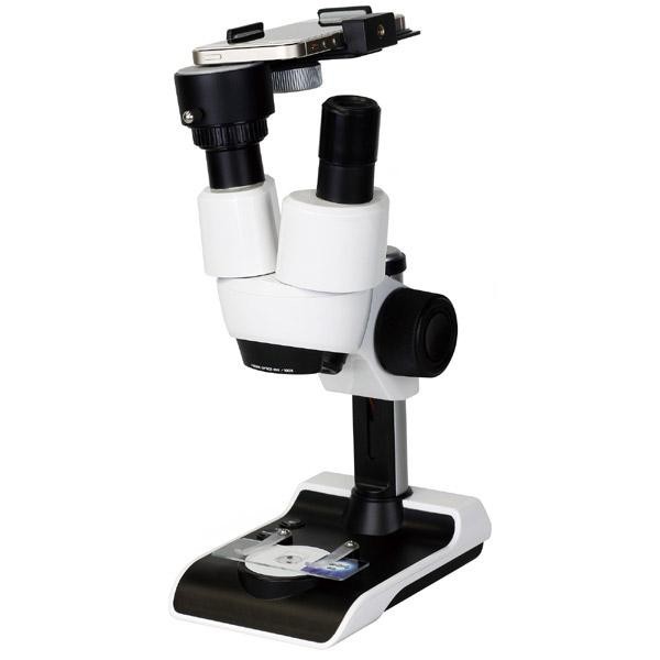 | 両目で観察できる「双眼顕微鏡」。検体を立体的に見ることができます。また、付属のアダプターでスマートフォンを取り付けて撮影することも可能。45倍用と100倍用の接眼レンズが付属しており、倍率を変えて楽しめます。 |