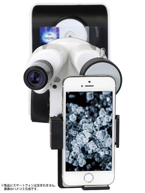 | スマートフォンも取付可能な100倍顕微鏡セット。 |