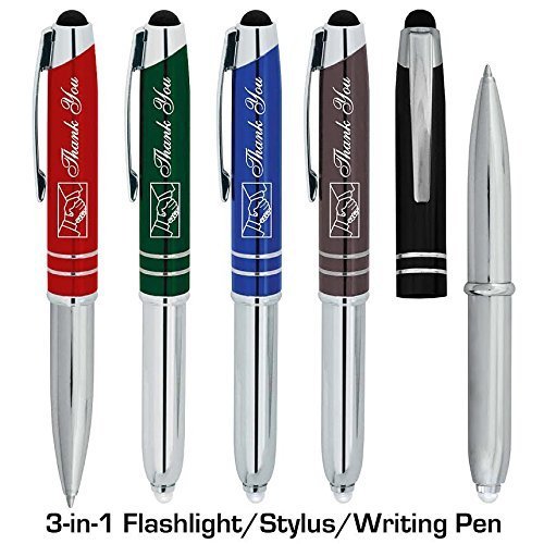 -. Title : Stylus "Thank You" Pen For TouchScreen Devices - 3 in 1 Metal Pen - Compatible With Tablets, iPads, iPhones - Retractable Metal Ballpoint Pen - LED Flashlight - Plenty Of Color Options - By SyPen