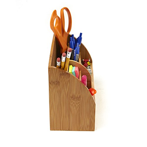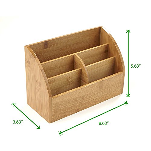 Mind Reader Bamboo Desk Supplies Organizer, 5 Compartment, Brown