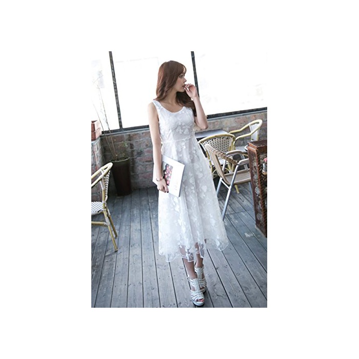 원본상품명: 【クロスユ】Cross You 花柄 刺 Aライン レディス ロング ワンピス マキシ ワンピ 白 ホワイト S XL (M)