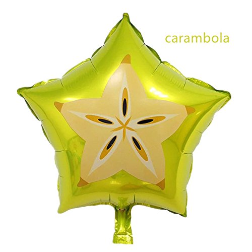 -. Feature : Material:high quality foil balloons / Diameter: 18 inch / 6 different fruits: Watermelon, Carambola, Kiwi fruit, Dragon fruit, Orange, Strawberry / Automatic sealing, pinch the mouth after inflating the balloon flat, the balloon comes viscose mouth sealed automatically / Great for birthday party, anniversary, wedding, baby shower or any other party decoration