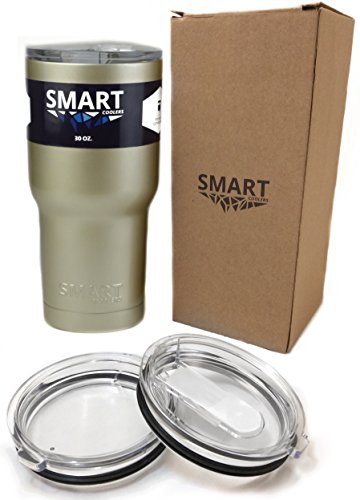 -. Title : Smart Coolers - Vacuum Insulated Stainless Steel Travel Tumbler Cup 30 Oz - Keep Coffee and Ice Tea - Clear Lid