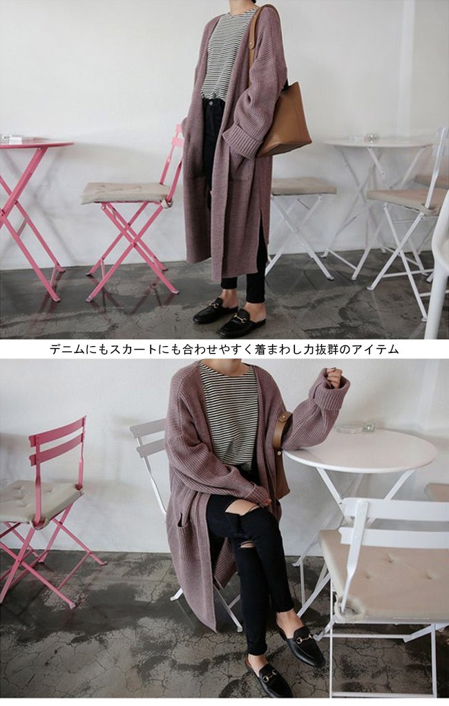 | 商品名 | ロング丈 ニットカーディガン コート アウター レディース コーディガン 厚手 秋服 ゆるシルエット 無地 スリット 春秋 ポケット付き カジュアル オシャレ 羽織り |