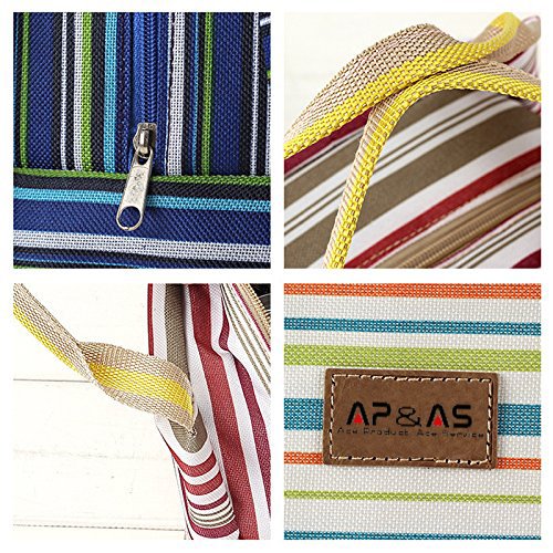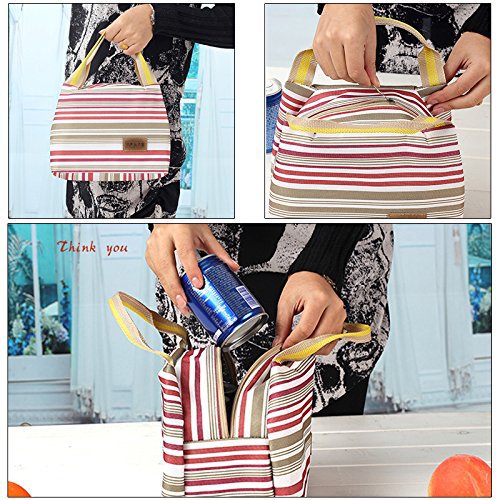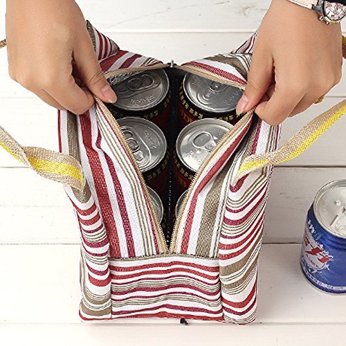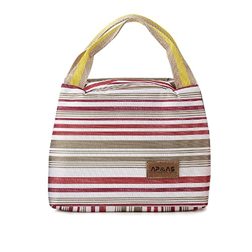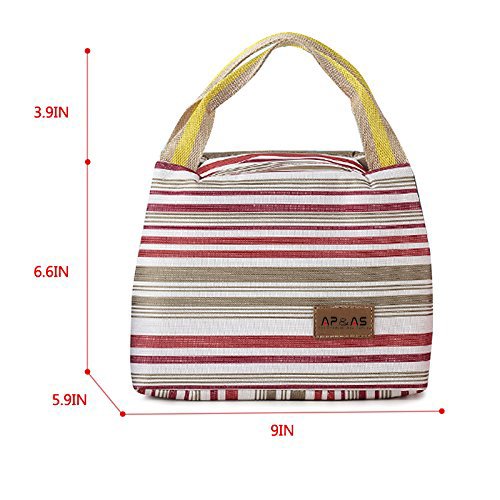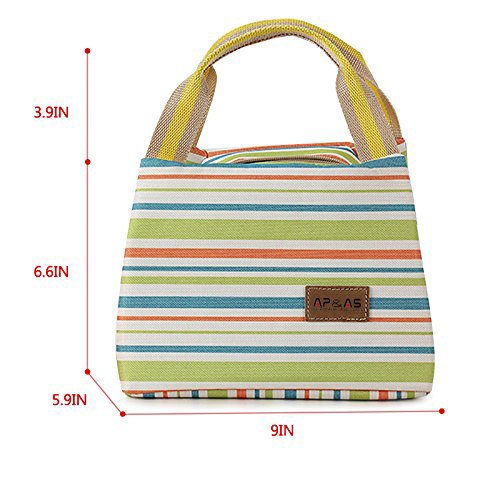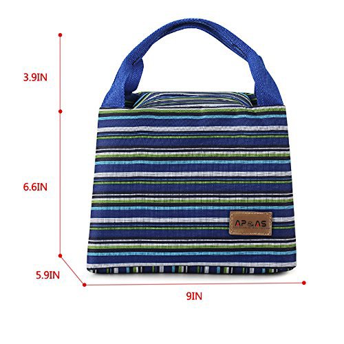 -. Brand : SPA -. Feature : Made of high quality canvas & fully lined aluminum foil, keep food warm or cold for up to 5 hours / Top zipper closure, fresh stripes, cute, fashionable to carry out, decent size for holding 6 tins of beers / Waterproof and grease-proof, easy to clean and wash, practical, affordable price and reusable / Can be stored flat,?great for any outdoor activities like camping, picnicing, road trips, fishing, etc. / A fashionable way to carry meals, snacks, beverages, drinks, also a perfect gift for your loved ones -. Label : Bonfuture -. Manufacturer : Bonfuture -. Model : HG10-0009 -. MPN : HG10-0009 -. PartNumber : HG10-0009 -. ProductGroup : Kitchen -. ProductTypeName : KITCHEN -. Publisher : Bonfuture -. Studio : Bonfuture -. Title : APAS Insulated Lunch Bags Dual Handles Zipper Stripe Canvas Food Holder Tote for Women Men Kids Students