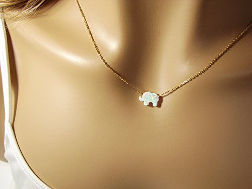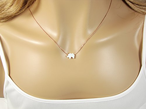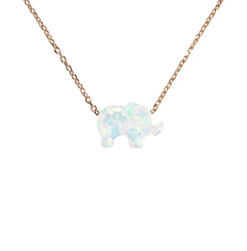 -. Feature : 925 Sterling Silver Chain, Gold plated or Rose gold color / Synthetic Opal Elephant pendant / Pendant size: 11mm x 8mm. / Comes with a beautiful gift box