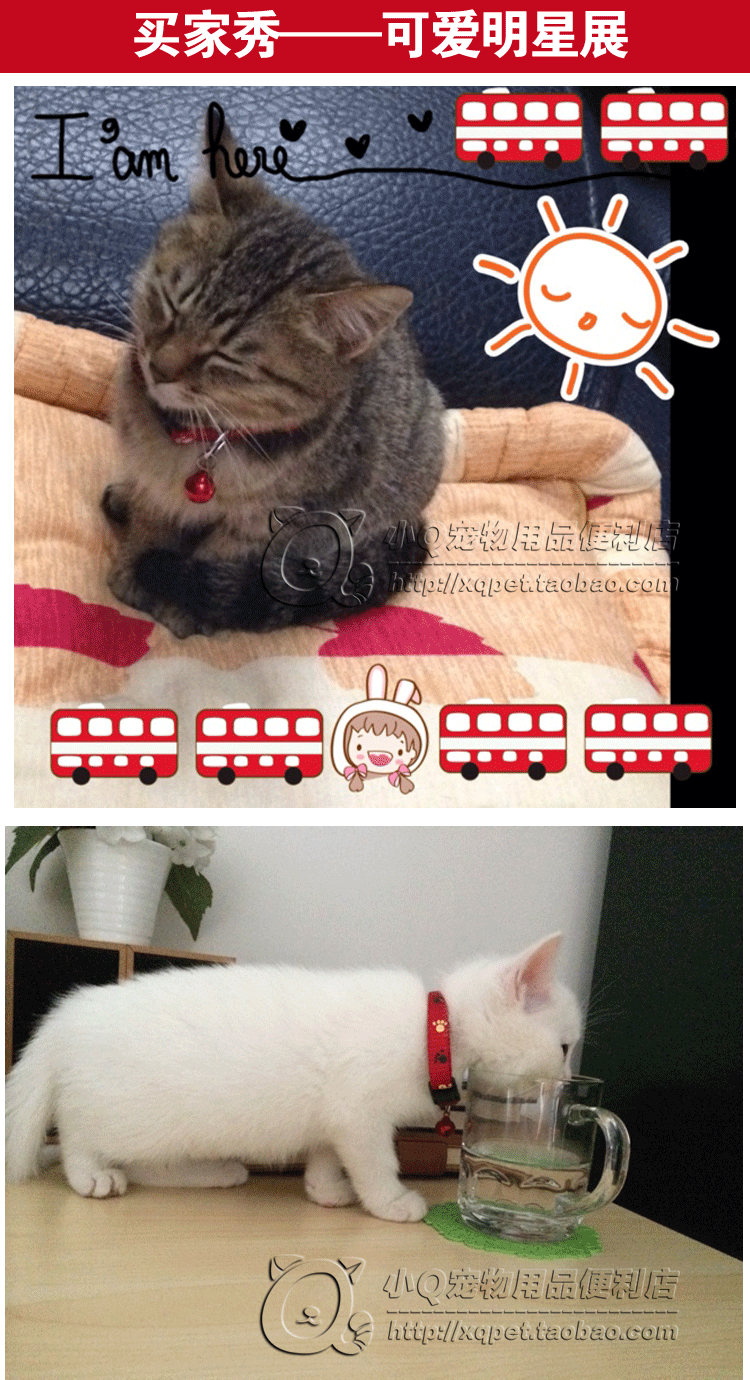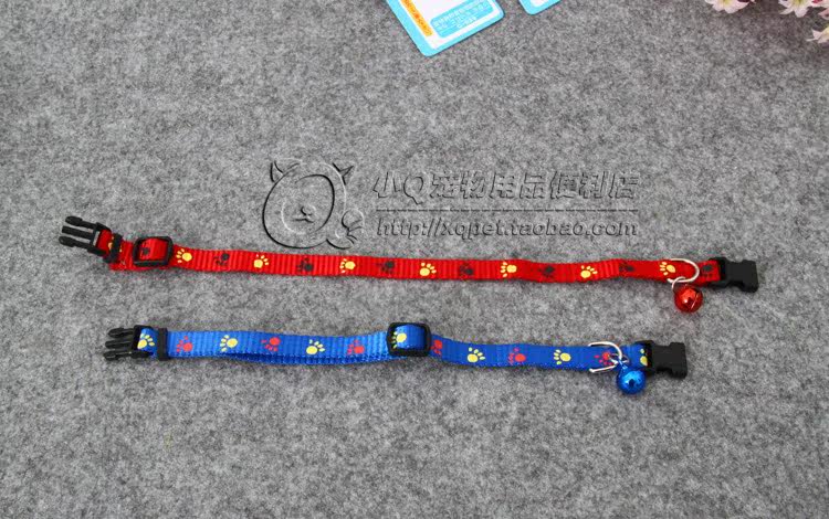 Very comfortable exquisite small collar, suitable for the cats, the material is nylon, soft but tough, not easy to break, not hard, the cats areuncomfortable, the collar of small footprint is shining, there is a little specialbell, walk along a road to come issued crisp sound master, can know the cat's dynamics at any time, various adorable cat need to hoard goods a.