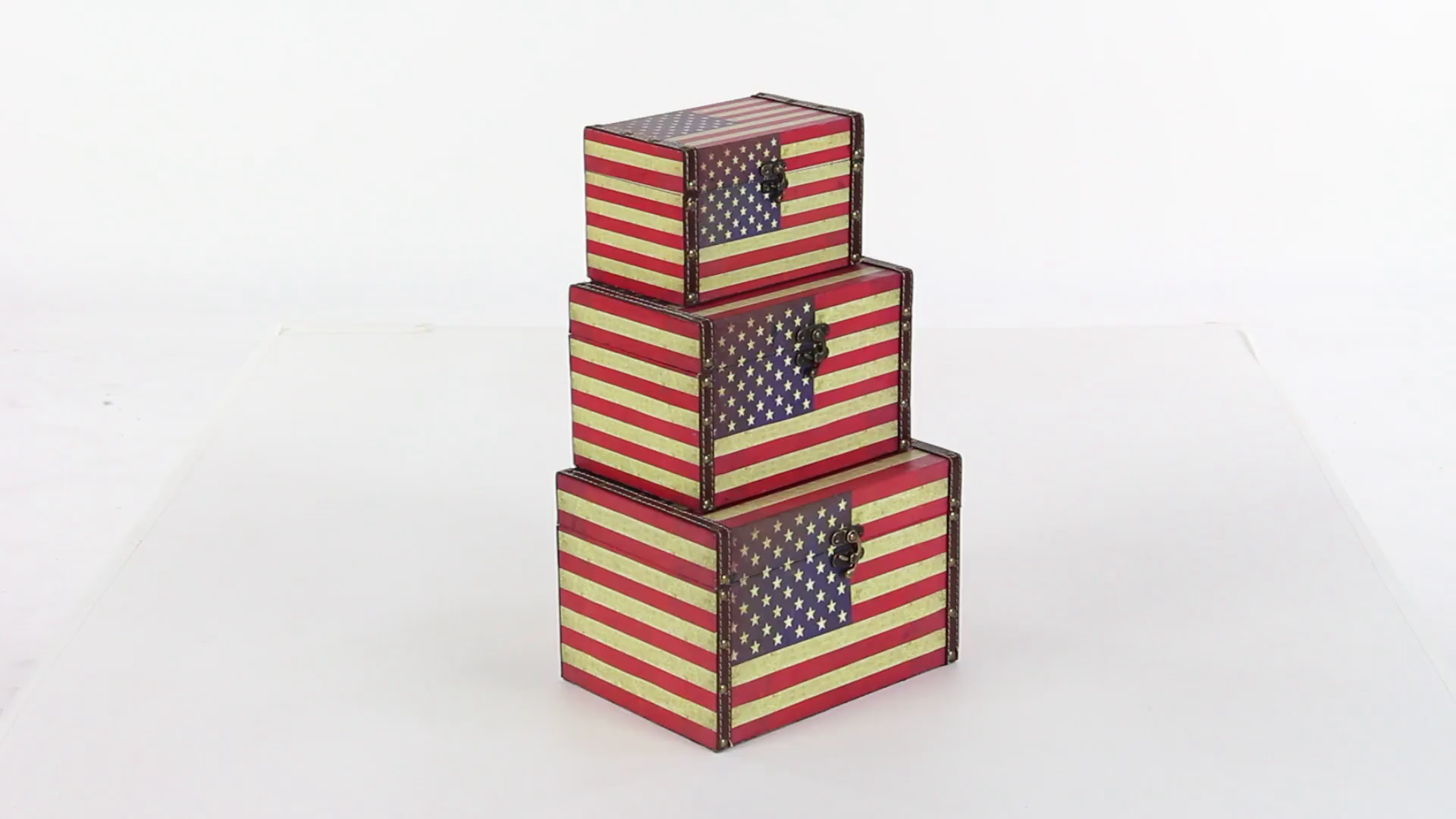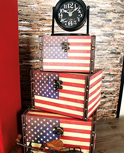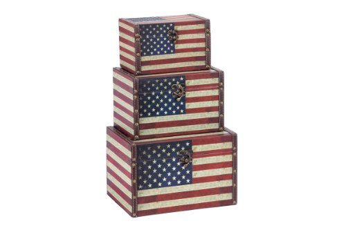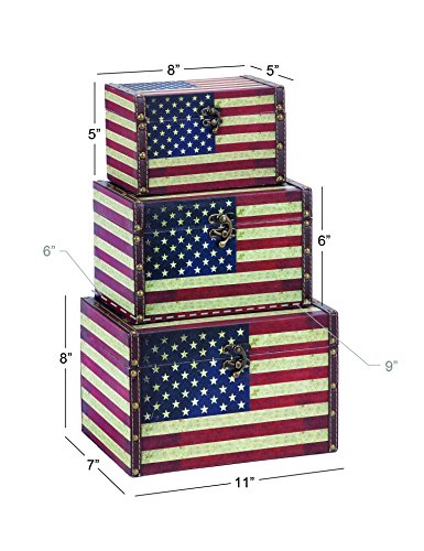 Deco 79 72196 Wood Leather Box with US Flag Colors