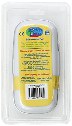 -. Binding : Baby Product -. Brand : Stephen Joseph -. Color : Dino -. Department : baby-boys -. EAN : 0794866579595 -. Feature : Make every meal fun with this colorful spoon and fork set / Dishwasher safe / BPA and PVC free / Made with durable melamine and stainless steel / Great Stephen Joseph designs -. Label : Stephen Joseph -. LegalDisclaimer : This store front is the property of Ethan & Eian. It may only be reproduced, disclosed or distributed for non-commercial use with written authorization from Ethan & Eian. Any unauthorized reproduction, disclosure or distribution of copies by any person of any portion of this website may be a violation of the Copyright Law. -. Manufacturer : Stephen Joseph -. Model : SJ108759 -. MPN : SJ108759 -. PackageQuantity : 1 -. PartNumber : SJ108759 -. ProductGroup : Baby Product -. ProductTypeName : BABY_PRODUCT -. Publisher : Stephen Joseph -. ReleaseDate : 2014-08-25 -. Studio : Stephen Joseph -. Title : Stephen Joseph Fork and Spoon Set, Dino -. UPC : 794866579595