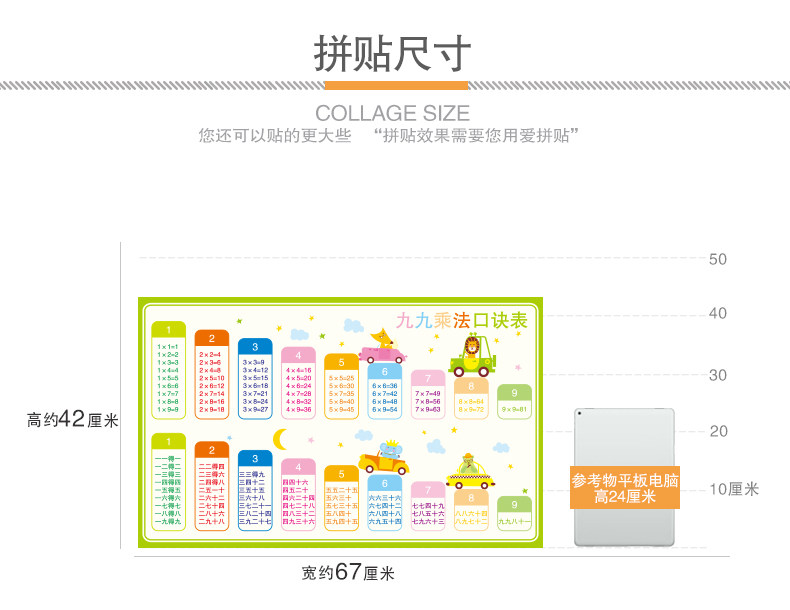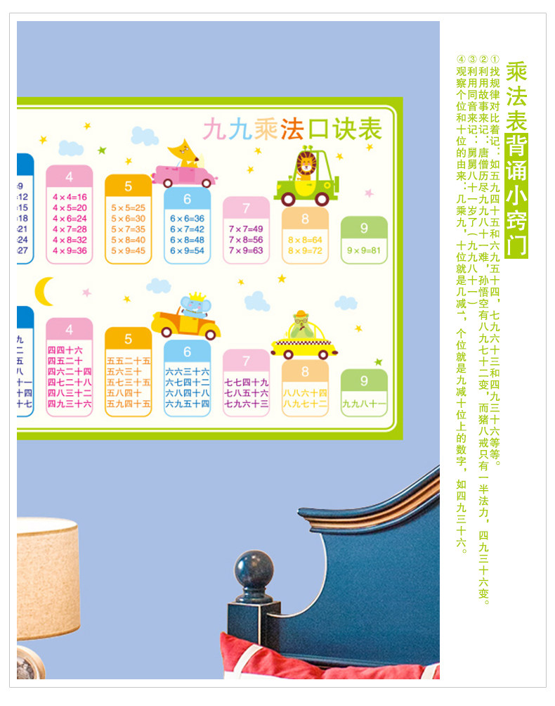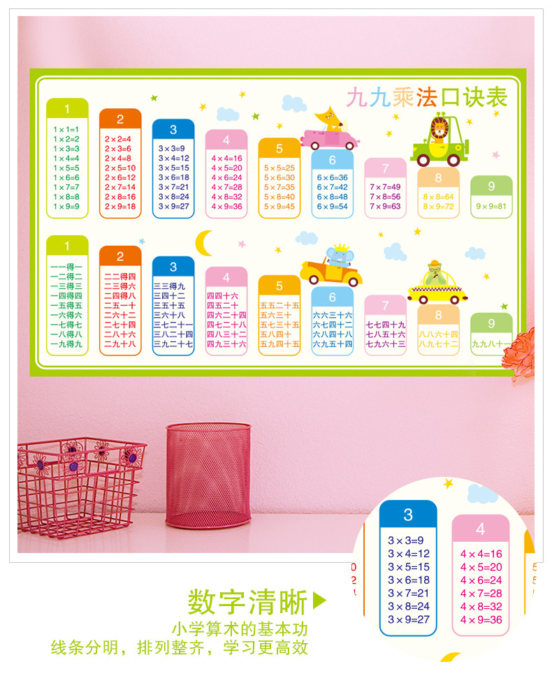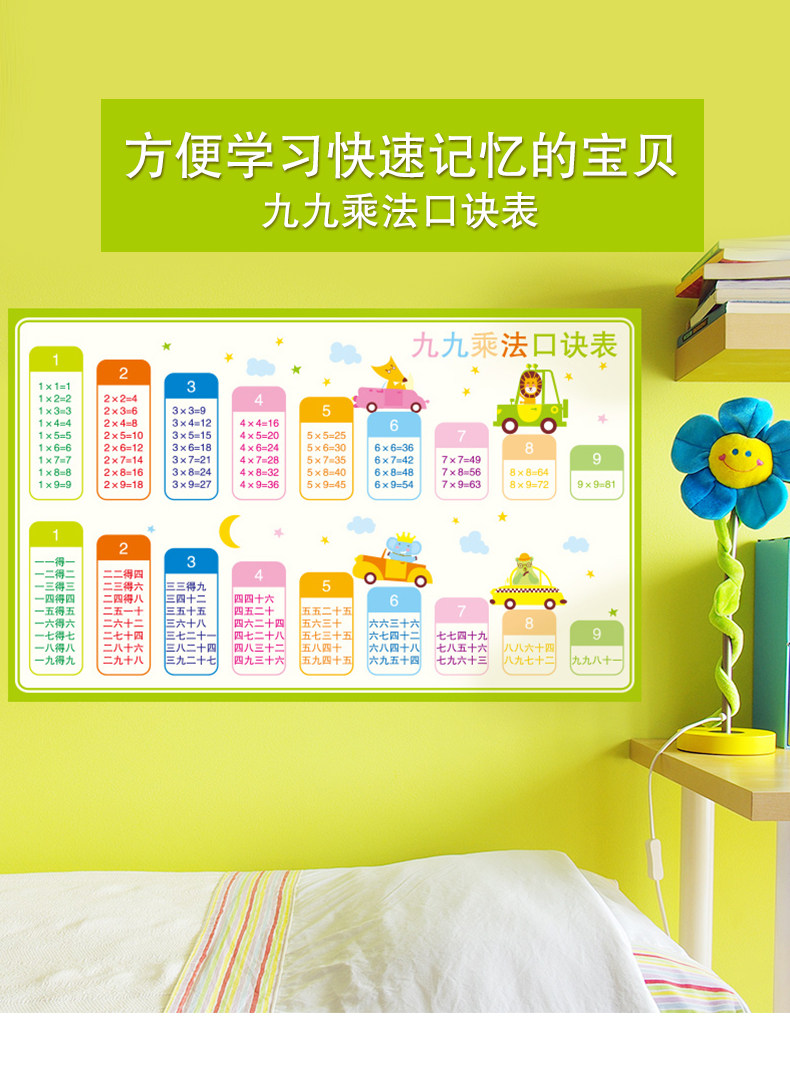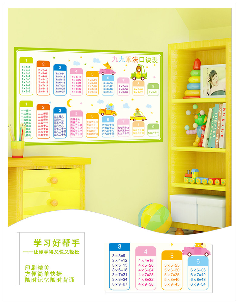 教室布置装饰班级文化墙贴幼儿园墙面卡通墙纸自粘九九乘法口诀表