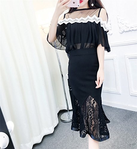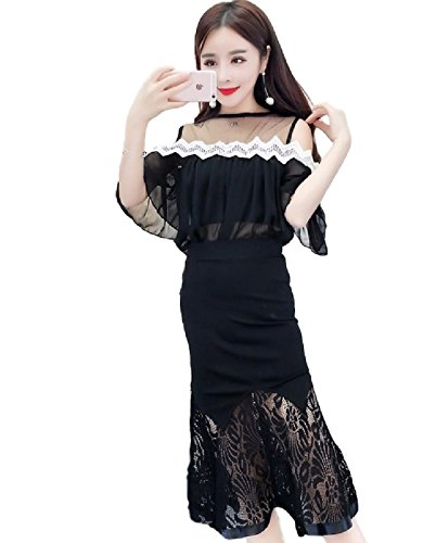 -. Title : (チョロモ) Cholmo レディース ツーピース シースルー ストラップレス ブラウス フィッシュテールスカート ドレス レース モノトーン 個性派
