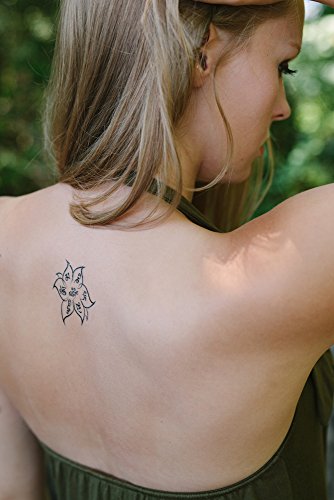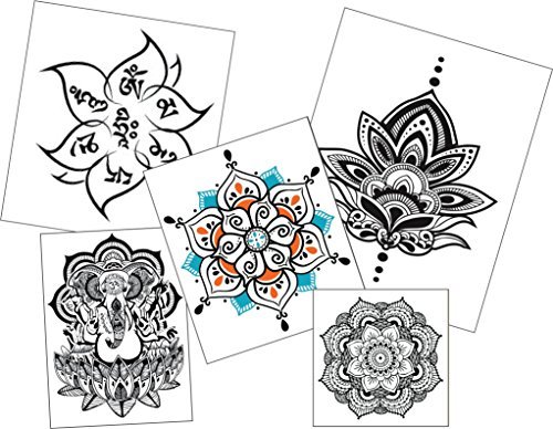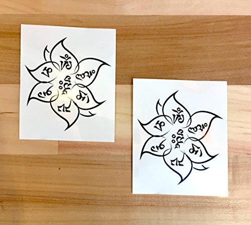 Yoga Lotus Om Mani Padme Hum Temporary Tattoo - Realistic Body Art - Yoga Gift and Accessory - Set of 2, Size 2.5" x 3"