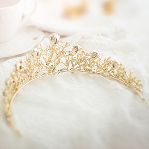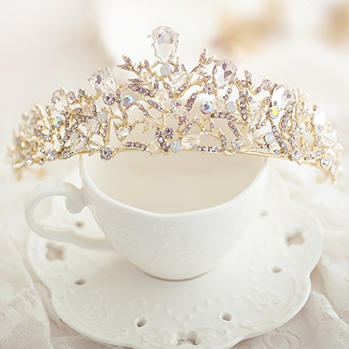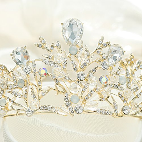 Yean Wedding Crown and Tiara Flower Bridal Princess Queen Gold Crown Vintage Rhinestone Headband for Bride and Bridesmaid