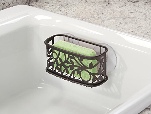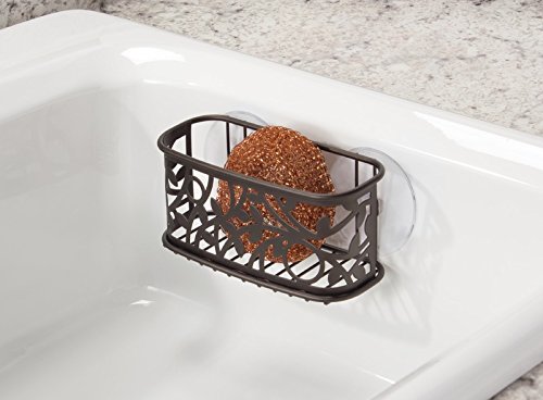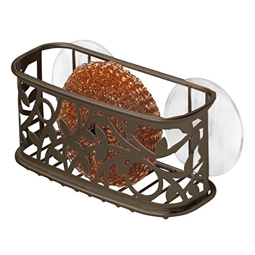 mDesign Kitchen Sink Suction Holder for Sponges, Scrubbers, Soap - Bronze