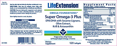 (Life Extension)/Vitamins Dietary Supplements/Supplements/DIRECT FROM USA/Super Omega-3 Plus EPA/DHA with Sesame Lignans, Olive Extract, Krill Astaxanthin 120 softgels...
