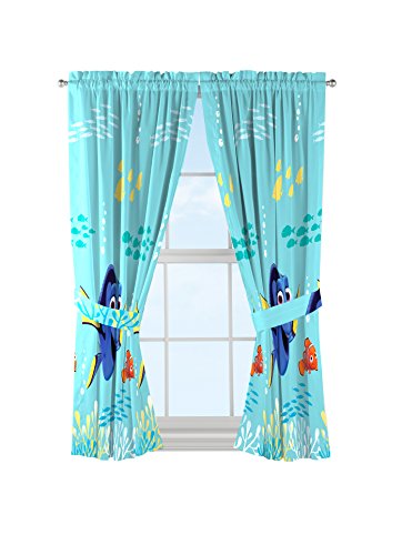 Disney/Pixar Finding Dory 'Swim Fins' Blue Microfiber Curtains with Tie Backs 4 Piece Set