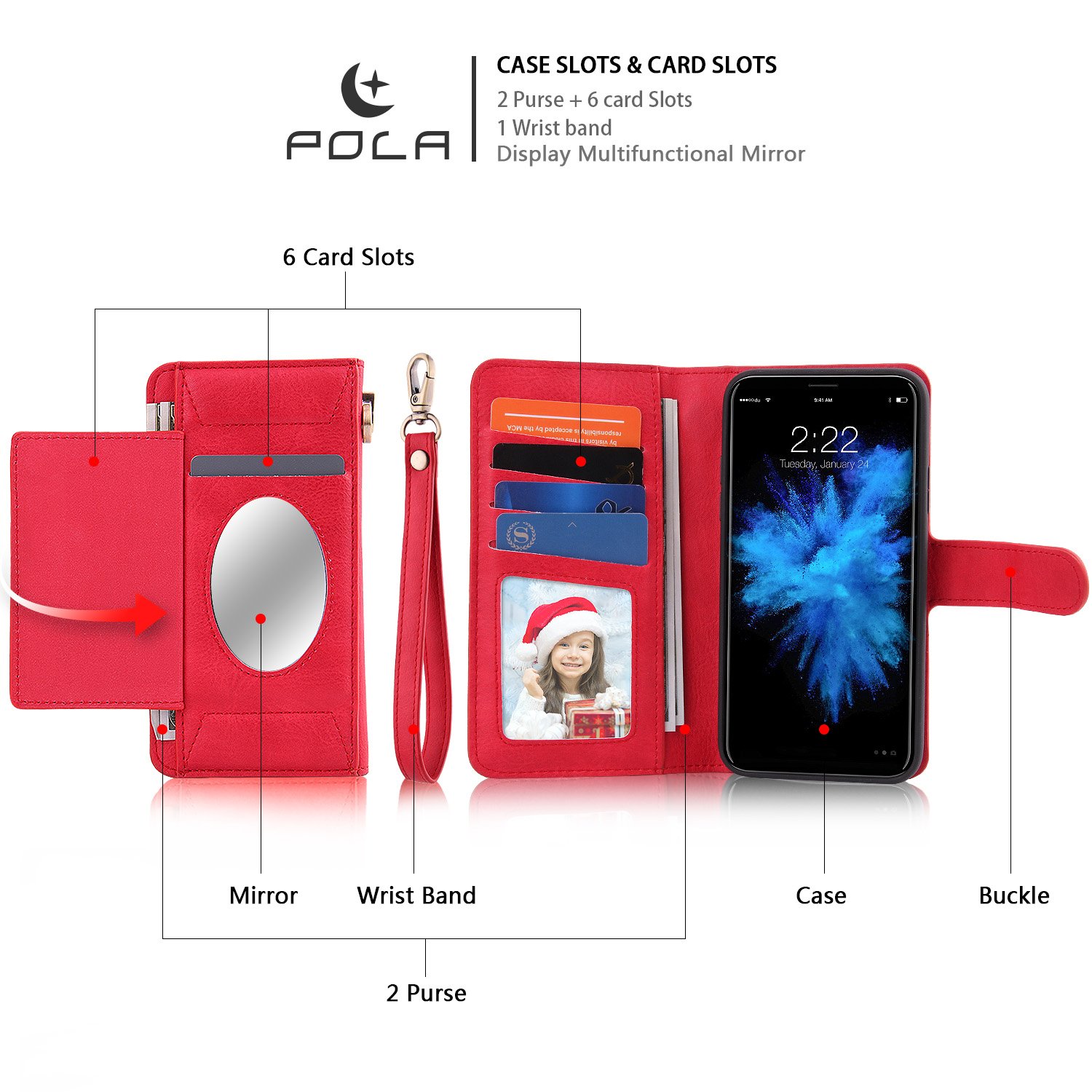 A case emphasizing the wallet function, with a rich card pocket, a parking ticket, a convenient card slot for business cards, insertable side pockets, etc. Extra storage function!