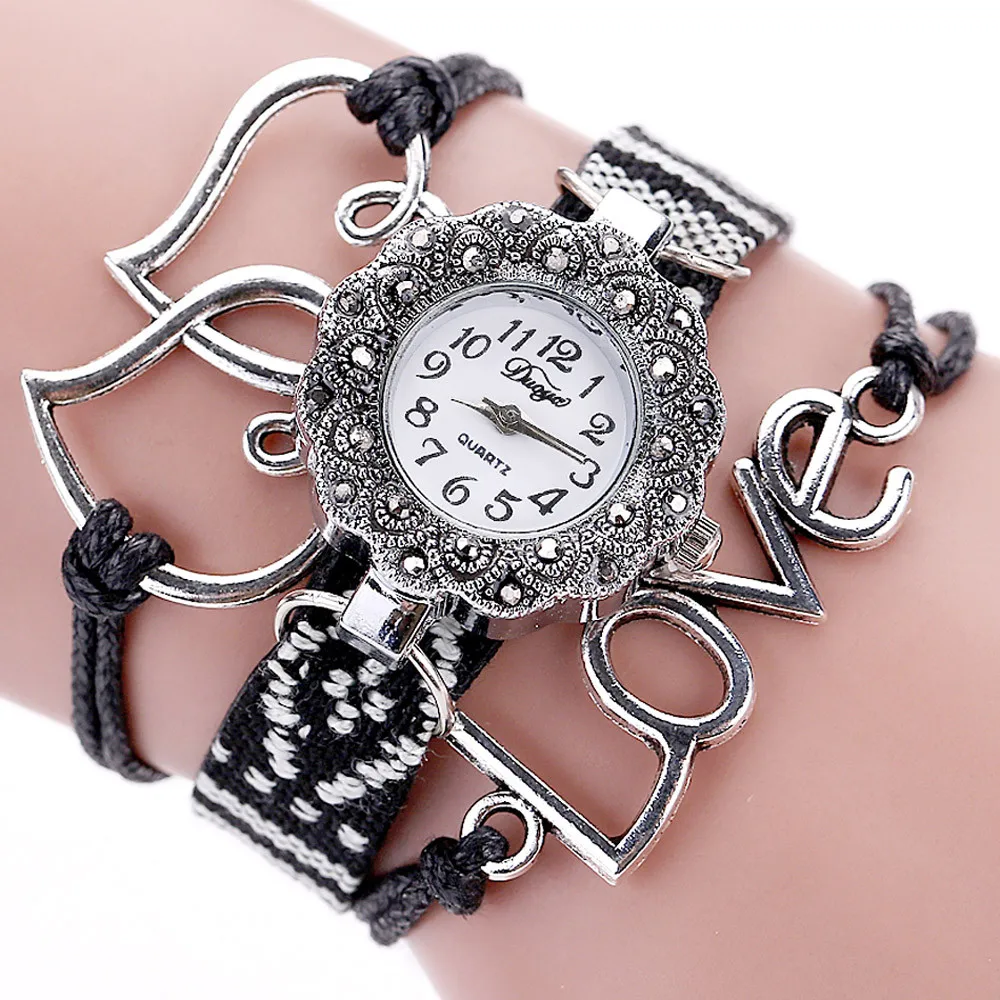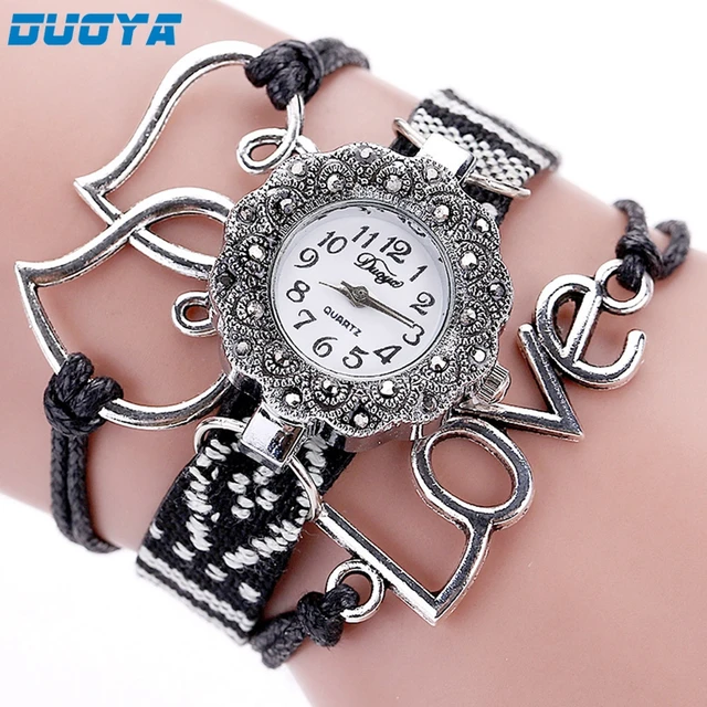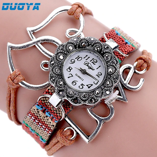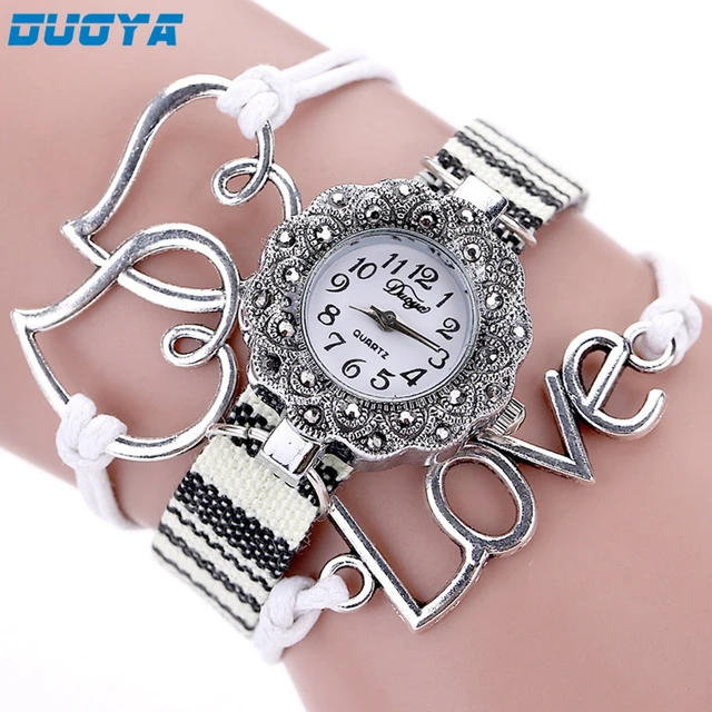 | [해외] 새로운 Duoya 패션 여성 팔찌 시계 골드 석영 선물 시계 손목 시계 여성 드레스 가죽 캐주얼 팔찌 시계 #01 |