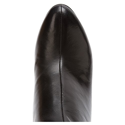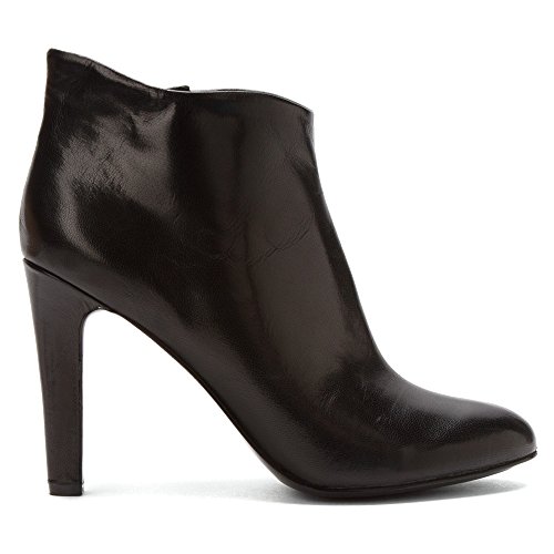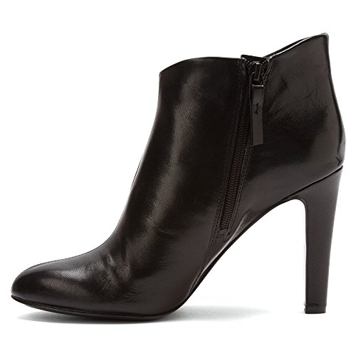 - Feature : Leather bootie featuring almond-shaped toe, sculpted opening, and vertical seam up vamp / Instep zipper