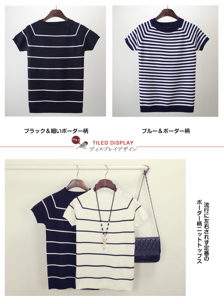 | 流行に左右されず定番のボーダー柄ニットトップス通気性優れ、一年中愛用される着回し力抜群のマストアイテムTシャツよりもキレイめに、シャツよりもカジュアルに合わせられる半袖ニット1枚としても、インナーとしてもいろんなコーディネートが楽しめます | |