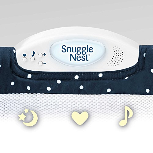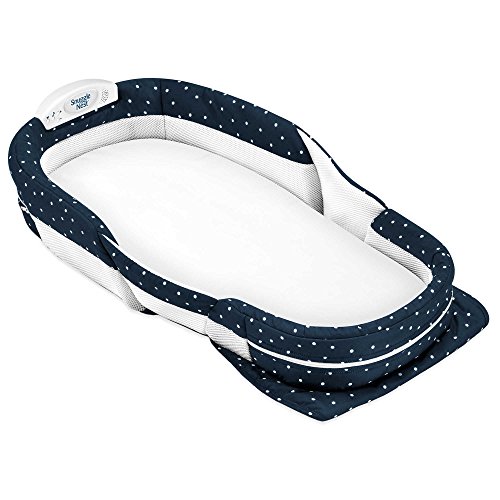 -. Binding : Baby Product -. Brand : Snle Nest -. Color : navy -. Feature : Create separate sleeping space for co-sleeping babies in the adult bed with the Baby Delight Snle Nest Surround Extra-Large Portable Infant Sleeper | Can be used as a travel bed or daytime napper | Sturdy, vented support walls enclose baby, providing closeness and a sense of security / Waterproof foam mattress with fitted wraparound sheet | 1.5" molded Incline Wedge for optional use | Soothing sound options, Brahms' Lullaby and Womb Sound with 5-level volume control and automatic shut-off / A soft LED nightlight enables easy checks throughout the night and a new Comfort Mesh LinerTM provides comfortable surface | Folds neatly and compactly | Washable quilted cover and fabric sheet / Requires 2 AA batteries (not included) | Measures 30.5" L x 16" W x 5" H | For ages 0 to 4 months / Not for use in cribs and bassinets -. IsAdultProduct : 0 -. Label : Snle Nest -. Manufacturer : Snle Nest -. ProductGroup : Baby Product -. ProductTypeName : BABY_PRODUCT -. Publisher : Snle Nest -. Studio : Snle Nest -. Title : Baby Delight Snle Nest Surround Extra-Long Portable Infant Sleeper in Navy Swiss