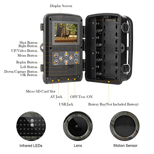 VARIOURS FEATURES & 1-YEAR WARRANTY: More tests, more fun. This camera features Interval Recording, Timer, Time Lapse, Password Protection, IP56-rated Waterproof, Time Stamp and Low Battery Alarm, making it ideal for outdoor use like animal hunting and trace trail, wildlife monitoring, home surveillance and more. 1 year warranty and technical support are covered.