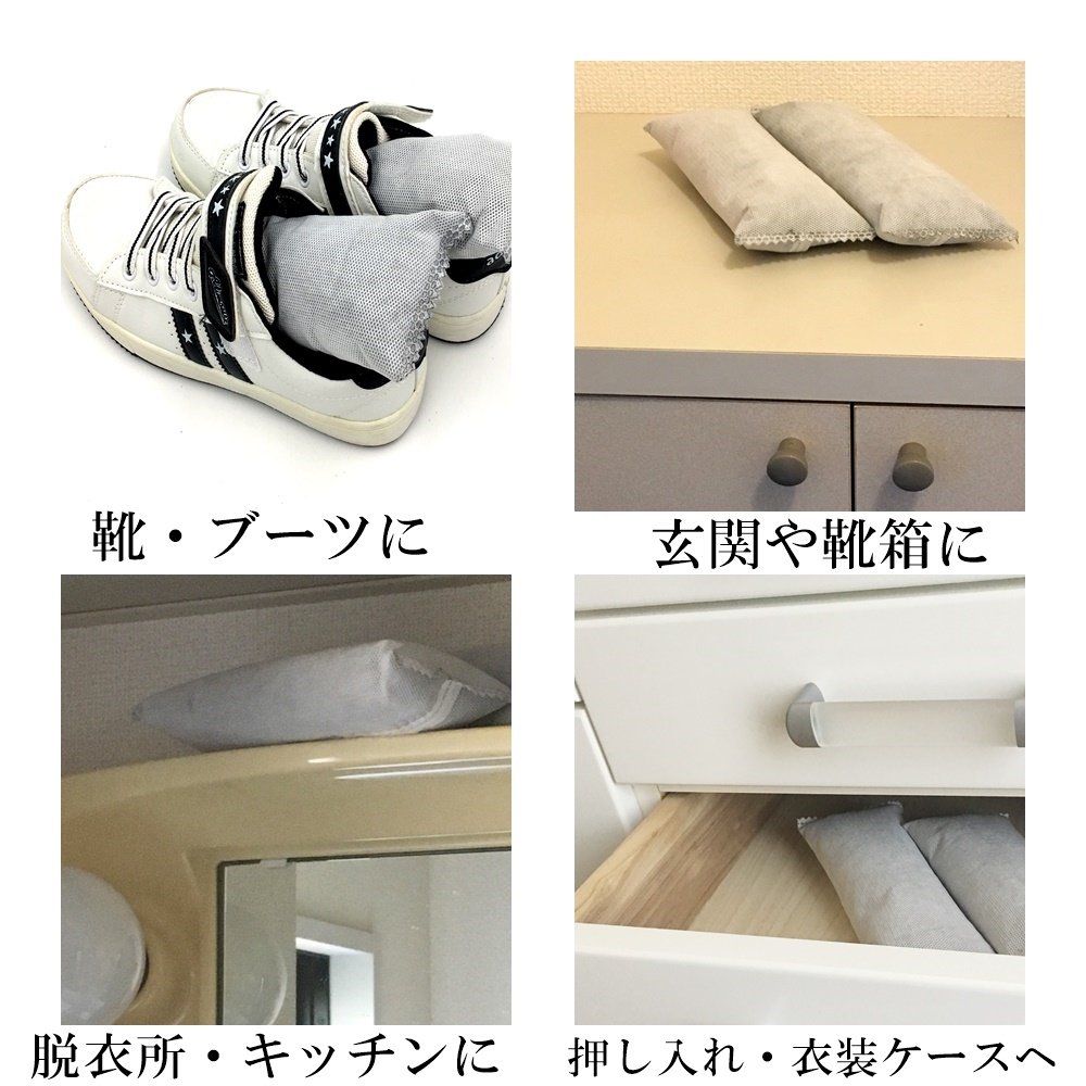 It is a desiccant of bamboo charcoal that you can use regardless of location such as shoes, shoes, business shoes, sneakers, boots, entrance, room, closet, closet, costume case, dressing room,
