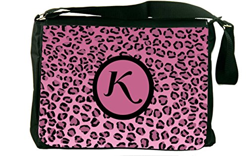-. Title : Rikki KnightTM Letter "K" Initial Sky Blue Leopard Print Monogrammed Design Messenger Bag - Shoulder Bag - School Bag for School or Work