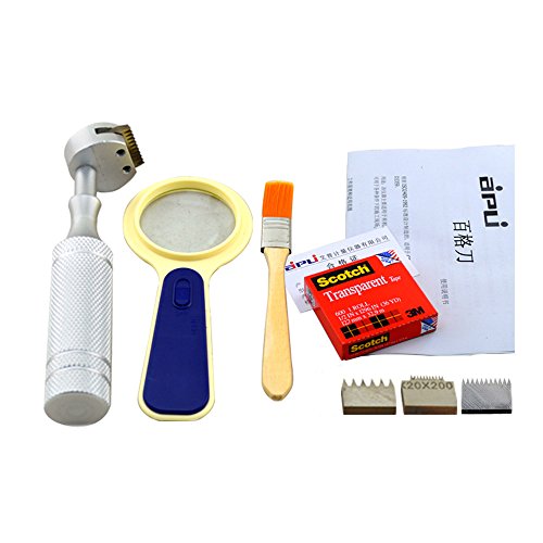 Newest Cross Hatch Adhesion Tester Cross-cut Adhesion Tester Kits with 1mm/2mm/3mm Blades, Magnifier, Handle, Brush and 3m Tape