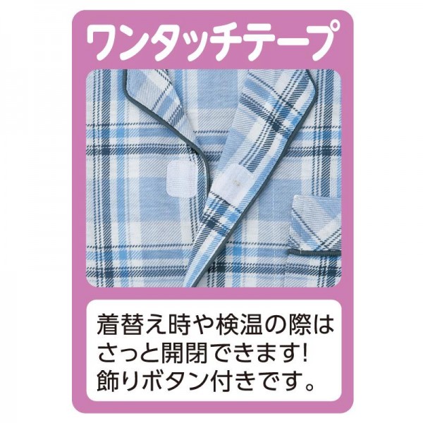 fk094igrjs脇の下ゆったり仕立てだから着替えもらくらくです  サイズ 個装サイズ:36×25×5cm 重量 個装重量:670g 素材・材質 ポリエステル65% 綿35% 仕様 洗濯機洗い可 製造国 中国 簡単ワンタッチテープでらくらく  グレー ※格子柄は若干変更になる場合もございます  ブルー サックス 脇の下ゆったり仕立てだから着替えもらくらくです