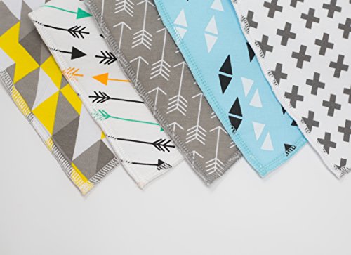 - ✔️TRENDY AND STYLISH BABY FASHION ACCESSORY - Modern set of 5 trendy unisex bibs. Neutral patterns look great on both boys and girls. Super-comfortable design with baby in mind.