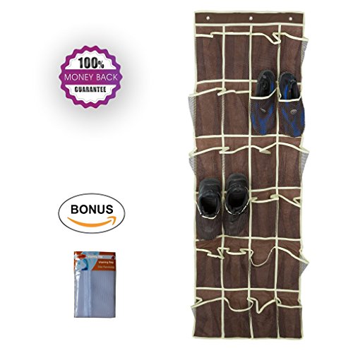 -. Feature : MATERIAL - Made of breathable canvas cloth and mesh, washable and heavyduty - great for storing shoes, slippers,toys, and other accessories. Dark Brown - Will Not Show the Dirt. / FUNCTION - Tidy up the entire house. Durable see-through oversized mesh pockets to hold remote controls, craft items, toys, bathroom and laundry supplies, kitchen pantry and garage items will all now have a home. The heavyweight canvas organizer can securely store all those items that have been cluttering up your home / EASY TO USE - Just hook it on to the door,3 sets of hooks provided, hangs over the door or everywhere you need.Durable metal mounting hooks ensure those shoes will stay securely on the door and Velcro strips ensure the hanging shoe organizer will not move when the door is opened or closed / Size - 45*150cm,240g,3 hooks,24 pockets / FREE BONUS - To welcome the holiday,buy C.A.Z over the door shoe organizer will get 1 x washing bag, the size of washing bag is 30x40cm or 40x50cm or 50x60cm at random.Limited Quantity,Buy Now,Save Now.