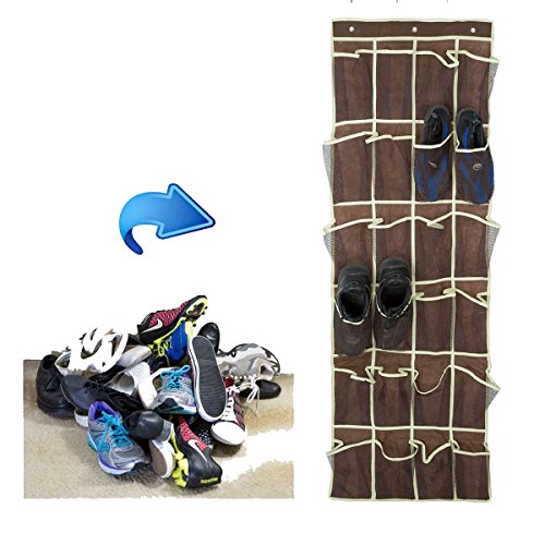 -. Title : Over the Door Shoe Organizer, C.A.Z Hanging Over the door Shoe Organizer with 24 Durable Mesh Storage Pockets for Large Shoes Complete with Strong Metal Mounting Hooks