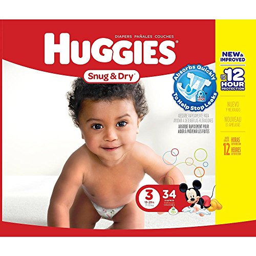 1. Huggies Snug & Dry Size 3 diapers fit babies 16 to 28 lbs.