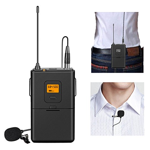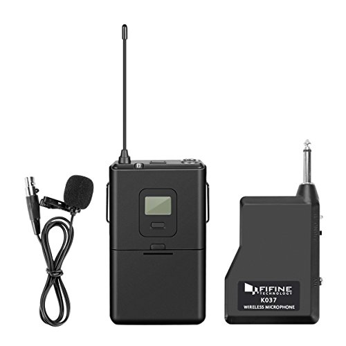 Fifine 25-Channel UHF Wireless Lavalier Lapel Microphone System with Bodypack Transmitter, Mini XLR Female Lapel Mic and Portable Receiver, 1/4 Inch Output. Perfect for Live Performance. (K037)