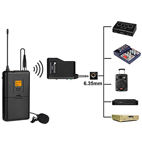 EASILY CONNECT TO COMMON AUDIO EQUIPMENTS. Work with speakers, mixers, electric guitar amplifiers and sound boards that with 1/4'' interface to output the sound. Clear and strong vocals, perfect for stages, churches, meetings, presenters and lecturers.